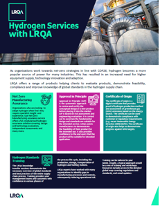 LRQA offers a range of products helping clients to evaluate products, demonstrate feasibility, compliance and improve knowledge of global standards in the hydrogen supply chain.