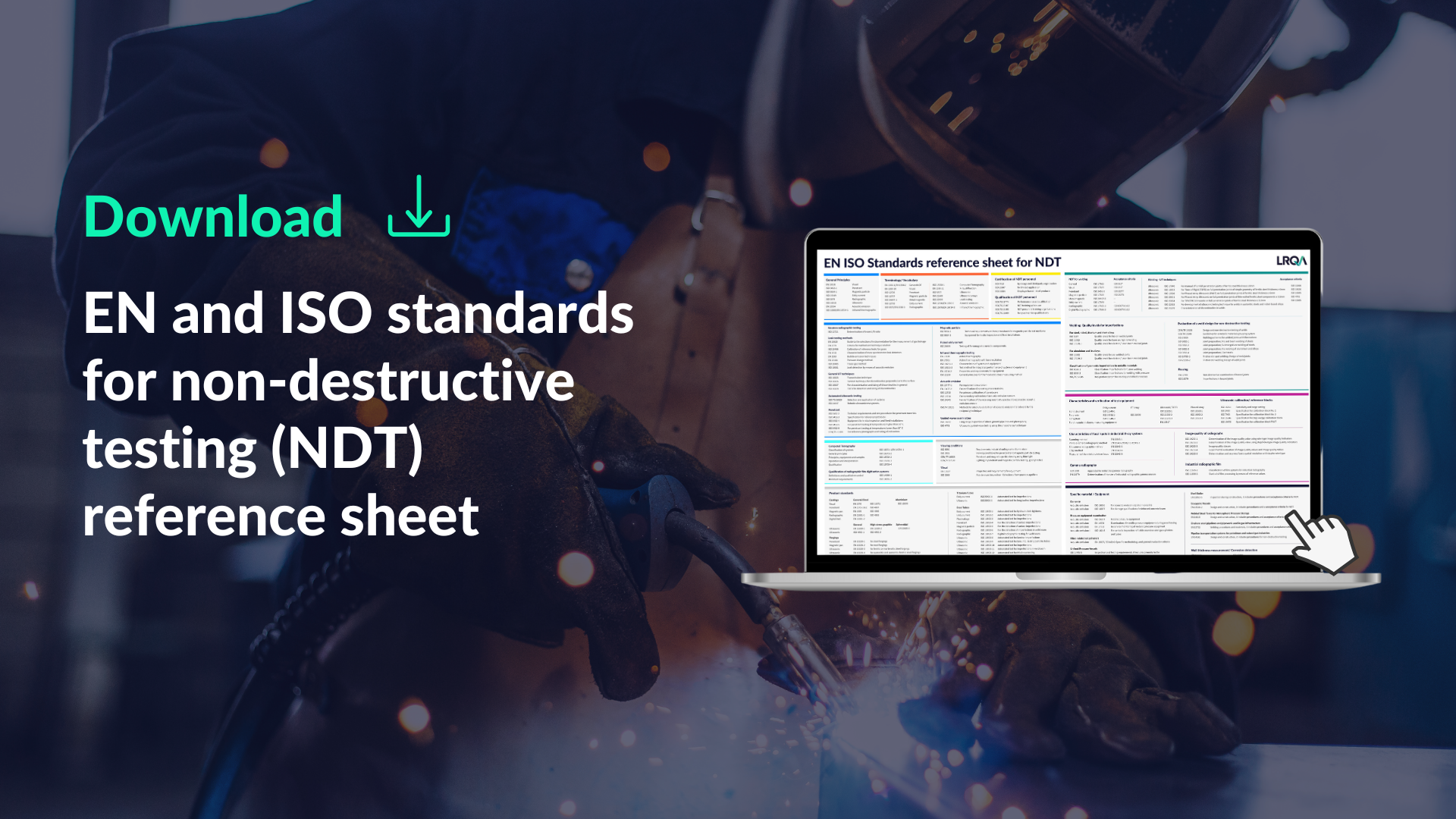 Navigeer door de fijne kneepjes van niet-destructief onderzoek met het uitgebreide EN ISO Normen gids van LRQA. Deze gids is ontworpen voor professionals op het gebied van lassen, inspectie en kwaliteitsborging en bevat essentiële normen voor conventionele NDO-methoden (zoals radiografisch, ultrasoon, penetrant en magnetisch deeltjesonderzoek) en niet-standaard NDO-methoden (zoals lektesten, akoestische emissie, infrarood en computertomografie) voor lassen, materialen (gieten, smeedstukken en buizen), corrosie en additieve productie en referentie naar ontwerpcodes voor drukapparatuur en pijpleidingen.